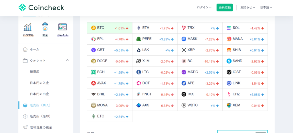 Coincheckには、簡単な操作で買える「販売所」と、ユーザー同士で売買する「取引所」の2種類があります。