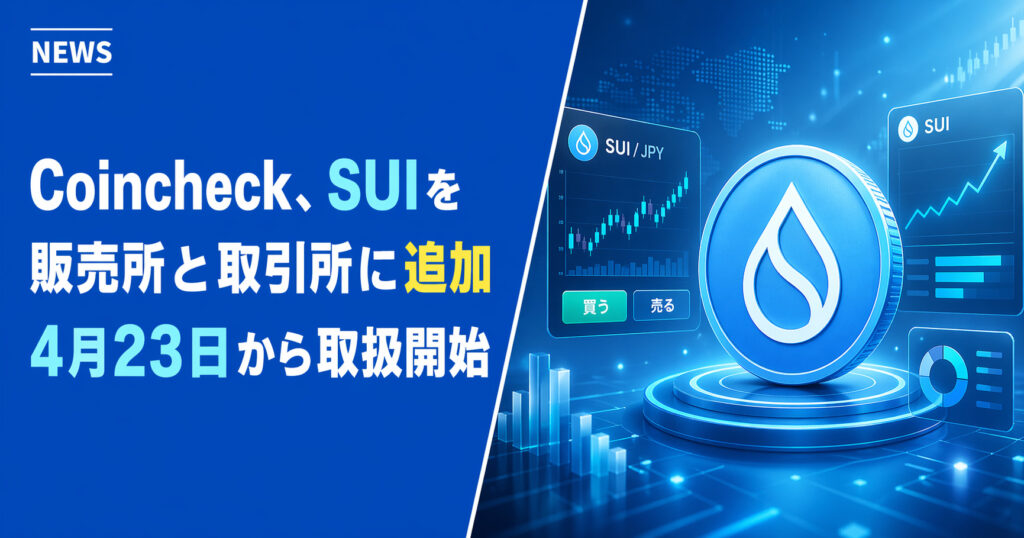 コインチェックは4月22日、暗号資産「スイ(SUI)」を4月23日からCoincheck販売所およびCoincheck取引所で取り扱うと発表した。コーポレートサイトのニュース一覧でも同日付で告知されており、Coincheckの取引画面上でも4月23日からSUIの取扱開始が案内されている。