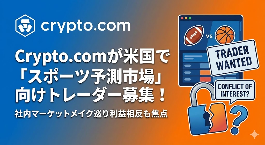 暗号資産取引所Crypto.com(クリプトドットコム)が、米国でスポーツ予測市場(スポーツイベント契約)におけるマーケットメイクを担うトレーダーの募集を始めた。流動性提供を社内で担う形となる可能性があり、利益相反や規制当局の視線が改めて注目されている。