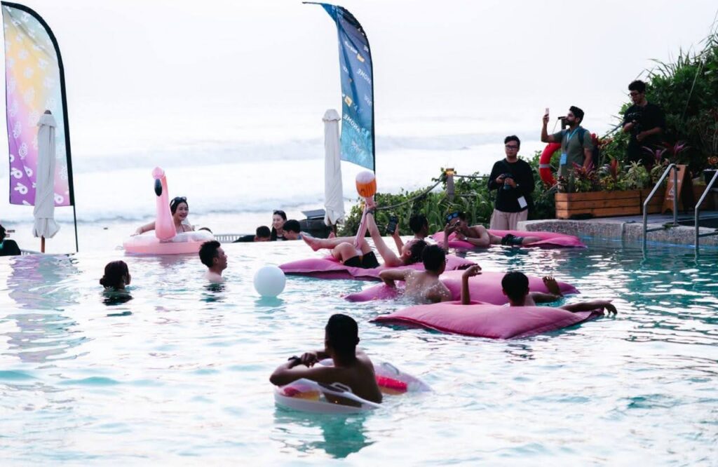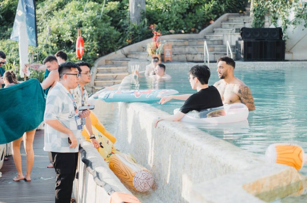 気温30℃のトロピカルなバリ島の会場には、洞窟プールや体験型ゲームエリアが用意され、DJプレイやオリジナルドリンクとともにゲストに爽やかな夏の雰囲気を提供しました。参加者はプールで夏を満喫し、カードバトルのミニゲームを楽しみながら、リラックスした交流を通じてネットワークを広げ、意見を共有し、新たなコラボレーションの可能性を見出しました。
