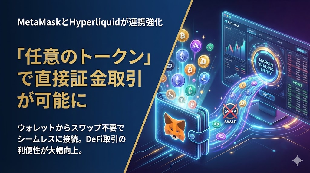 今回のアップデートにおける最大の注目点は、MetaMaskウォレット内に保有している任意のEVM(イーサリアム仮想マシン)対応トークンを、直接Hyperliquidでの無期限先物取引の証拠金(マージン)として利用できるようになった点だ。