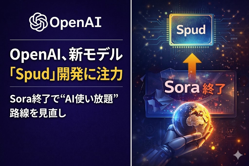 Sora終了とSpud開発報道は、OpenAIの戦略が「話題性の高い消費者向け機能の拡張」から、「基盤モデルと企業向け実装への集中」へ明確に傾いていることを示している。特に、動画生成のような高コスト領域で撤退判断が下されたことは、今後のAI業界全体にも影響を与えそうだ。生成AI競争は、機能の多さだけでなく、どの領域に計算資源を投じるかという経営判断の競争へ移っている。